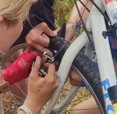 In the afternoon, we kicked off a "Do It Yourself" bike repair workshop to get our rides in top shape for the journey ahead. 🛠️⚙️🔧 It was all about teamwork, grease-stained hands, and making sure every bike was road-ready!