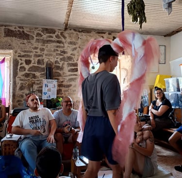 After miles of pedaling, laughter, sweat, and a few glorious snack breaks, we’ve put together something special: our very own fanzine! 🖌️✨ A patchwork of stories, sketches, poems, and reflections capturing the essence of this wild and wonderful Erasmus+ adventure—where queer joy meets the deep roots of Galician traditional culture.